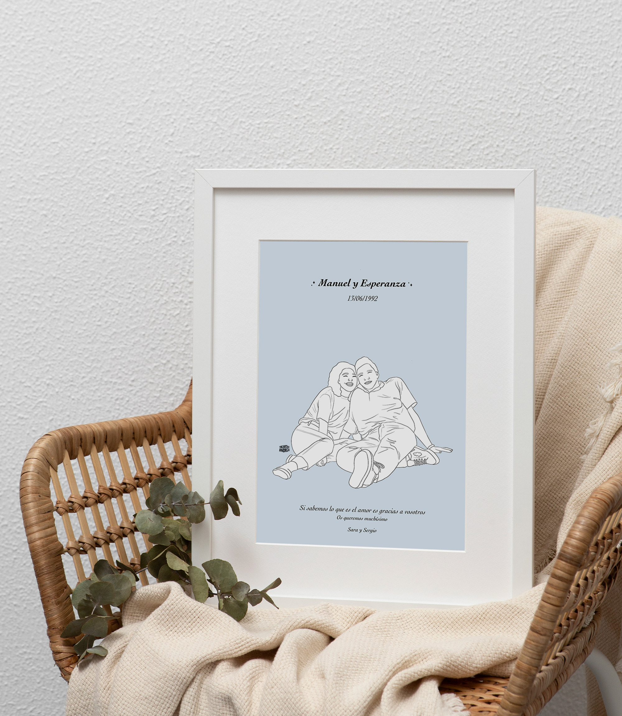 La opción “Lista para regalar” incluye la ilustración enmarcada y envuelta para regalo, y puedes añadir de forma gratuita un mensaje personalizado para el destinatario.